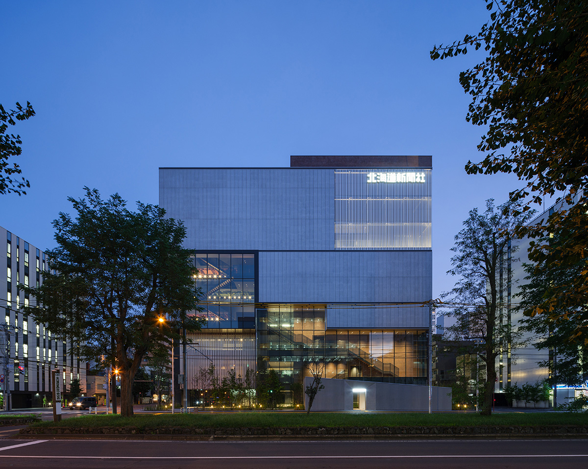 北海道新聞社の新本社である。積雪寒冷地では寒さゆえに閉鎖的な建物となりやすく、まちとの関係性が構築されづらい。オフィスにおけるアクティビティはデスクワークをはじめとする静的活動と、オフィス内の移動やリフレッシュといった動的活動の2つが存在する。