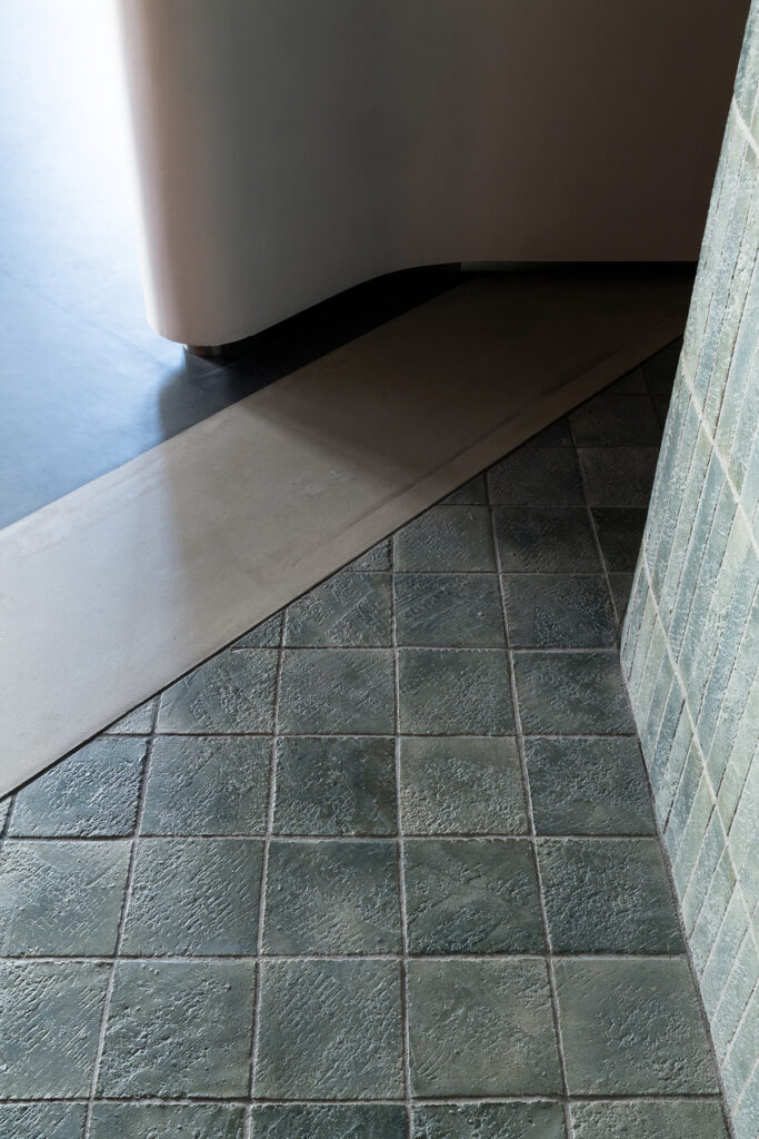 The renovation honors the building’s original structural composition and inherent beauty, introducing a new spatial configuration and floor levels that create subtle gradations of privacy while preserving a sense of connection to the surrounding community and nature. A single curved wall, mirroring the form of the building’s shared spaces, divides the open-plan interior into a sequence of fluid and interconnected scenes.